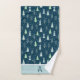 Modern Christmas Forest Trees Monogram Blue Green Bath Towel Set