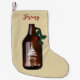 Modern and fun Christmas stocking for those that love beer, pubs, breweries and home brews... Simple brown growler jug with white "Merry Christmas" message and a sprig of holly at the handle. Personalise with name or monogram.