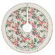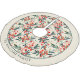 Modern Red Christmas Holly Berries Personalised Brushed Polyester Tree Skirt. Circular tree skirt with a festive holly berry pattern on a neutral background. The design features green leaves and red berries, creating a cheerful holiday vibe. Your personalised family name is on a neutral border.