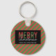 Modern Christmas Leopard Print Red Green Stripes Key Ring