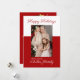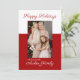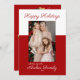 A modern Christmas card with a red and white background. Place your favourite family photo on the front of this trendy holiday card and two photos on the back. Featuring a beautiful calligraphy script for a modern, elegant look.