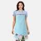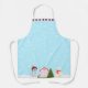 Modern Christmas ornaments on light blue Apron. Text can be personalised.