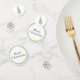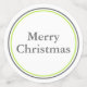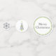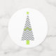 Festive Christmas party confetti with a modern grey, lime green and white colour pallet. The smallest confetti circle has a grey snowflake, the next size has a chevron pattern Christmas tree and the last has text reading Merry Christmas. Matching invitations and holiday party products are available.