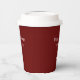 Modern Christmas red party paper cup, with a simple evergreen and customisable typography design. A festive addition to your dinner table this holiday season.