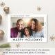 Modern Christmas card featuring your photo and "Happy Holidays," "May Your Days Be Merry + Bright" and your name in simple typography.