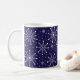 Modern festive Blue and white Christmas coffee or hot cocoa mug. White snowflakes on blue. Elegant design fit for a Merry Christmas and a snowy winter new year celebration. This mug is a modern home decor item that makes a stylish, cute Christmas gift or stocking stuffer.