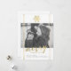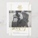 Modern Merry Christmas holiday photo card in white and gold faux foil. This stylish and elegant photo card features a white background, faux gold foil accents, modern typography, and placeholder for your family photo.