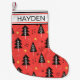 Modern Christmas Tree Red Orange Personalised Small Christmas Stocking