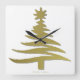 Modern Christmas Tree Stencil Print Gold Square Wall Clock