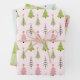 The third sheet features a playful purple backdrop, adding a sense of royalty to the festivities. The whimsical mix of pink trees and snowflakes, along with the green trees, creates a delightful contrast against the purple canvas. This design brings a sense of joy and creativity to your wrapped presents, making them stand out under the Christmas tree.