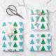 A bright and modern holiday themed gift wrap featuring green, bright aqua and light aqua Christmas trees in a simple pattern. Sold in a set of 3 sheets.