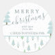 Modern Christmas Trees MERRY CHRISTMAS Script Blue Classic Round Sticker