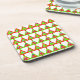 Drink coasters with my Christmas trees pattern in green and red with colourful round decorations.