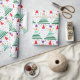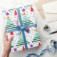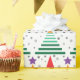 Christmas Gift Wrapping Paper with a modern Christmas trees pattern . The mod pattern with green Christmas trees illustration, purple stars and grey snow adds a festive touch to your Christmas gifts.