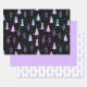 A collection of three coordinated wrapping paper sheets featuring a pattern of modern abstract Christmas and forest trees in winter snow in multi colours of purple pink blue and black. ASSISTANCE: For help with design modification or personalisation, colour change, resizing, transferring the design to another product or if you would like coordinating items, contact the designer BEFORE ORDERING via Zazzle Chat or email makeitaboutyoustore@gmail.com.