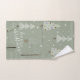 Modern Christmas towel set featuring a sage and olive green abstract Christmas and forest trees in snow patterns on white with your choice of holiday greeting or custom text (shown with MERRY CHRISTMAS). Makes a wonderful Christmas gift or hostess gift. ASSISTANCE: For help with design modification or personalisation, colour change, resizing, transferring the design to another product or if you would like coordinating items, contact the designer BEFORE ORDERING via the Zazzle Chat MESSAGE tab below or email makeitaboutyoustore@gmail.com.