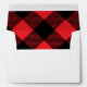 A charming and minimalist envelope for sending your holiday cards, there is a sleek graphic of three trees, four helpful lines for handwriting addresses and a convenient pre-printed return address on the back flap. The interior features a printed, cosy buffalo plaid pattern in black and red.