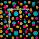 Elegant modern trendy abstract random circles seamless pattern. Gold glitter, pink and blue circles over customisable black background.