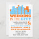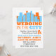 Modern City Wedding Invitations Orange And Blue. These orange and Blue modern wedding invitations are casual and fun for your invited guests. Customise this modern wedding invitation by replacing the wedding wording in the text boxes provided to the right of this modern wedding invite. If your wedding wording doesn't fit then click the "customise it" button and change the wedding text font size and lower the font size until your wedding wording fits. More colour options are available for these modern wedding invites.