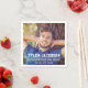 Celebrate your high school graduate with photo graduation party napkins. Personalise with a senior portrait, then fill in the custom text with your grad's name and school. The white text / stripes overlay design can be customised to any colour and re-positioned if needed.
