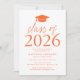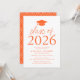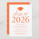 Invite guests to celebrate the grad with our modern class of 2025 graduation party invites. The invites feature a graduation cap at the top with "Class of 2025" displayed in orange modern lettering. Personalise the invites by adding the graduate's name, school, and graduation party details. The trendy graduation party invites reverse to display an orange and white trellis pattern.