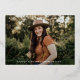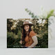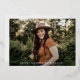 Celebrate the grad with our stylish photo graduation announcement. The graduation announcement displays the graduate's photo with "Class of 2025" in a real gold foil calligraphy script overlay. Personalise the front of the modern graduation announcement by adding the graduate's name, school name, and graduation year. The announcement reverses to feature a trendy black and white dotted geometric pattern. The design is perfect for both high school and college graduates.