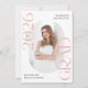 Announce the graduate's big achievement in style with this modern photo graduation announcement. The trendy design features "Class of 2025 Grad" in bold light pink lettering with subtle script accents with a solid white background. The graduate's vertical photo is displayed inside an oblong frame at the centre of the announcement. Personalise the front of the pink graduation announcement with the graduate's name and school. The announcement reverses to display an additional photo displayed inside of a white square frame with your custom text shown below. The stylish graduation announcement is perfect for high school and college graduates.