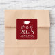 Seal your envelopes and graduation favour bags with these modern graduation stickers! The stickers feature a white graduation cap at the top of the design with "Class of 2025" displayed in bold lettering on a burgundy background. Personalise the burgundy graduation sticker with the graduate's name, school, and graduation year. This design is perfect to use for high school or college graduations.