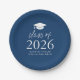 Modern Class of 2025 Script Navy Blue Graduation Paper Plate