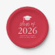 Modern Class of 2025 Script Red Graduation Paper Plate