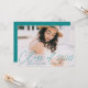 Invite guests to celebrate the grad with our stylish photo graduation invitations. The front of the graduation party invitations display the graduate's photo with "Class of 2025" in a teal modern calligraphy script overlay. Personalise the front of the modern graduation party invites by adding the graduate's name, school name, and graduation year. The invite reverses to display your graduation party details and a trendy teal and white dotted geometric pattern. The design is perfect for both high school and college graduates.