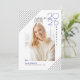 Modern lines class of 2026 graduate black and blue graduation photo announcement. An elegant design that showcases your photo, black stripes on the top left anf bottom right corners, the year 2025 in blue and the word "Graduate". The back includes a frame with your wording and a black and white striped border.