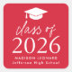 Modern Class of 2026 Script Red Graduation Square Sticker