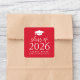 Seal your envelopes and graduation favour bags with these modern graduation stickers! The stickers feature a white graduation cap at the top of the design with "Class of 2026" displayed in bold lettering on a red background. Personalise the red graduation sticker with the graduate's name, school, and graduation year. This design is perfect to use for high school or college graduations.