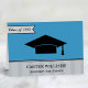 Simply elegant custom sky blue thank you notes that can be personalised with the high school or college graduate's name, their school, and class year. Design features a black graduation cap, modern banner detail, and subtle striped border.