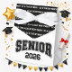 A stylish monochrome layout featuring rows of crisp white Class of 2026 text against a deep black backdrop, offering a clean and contemporary graduation aesthetic.