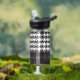 This design features a classic black and white houndstooth pattern. Combined with your own personalised text, this composition creates a modern classic and unique water bottle.