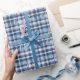 Modern Classic Blue Plaid Merry Christmas Holiday Wrapping Paper
