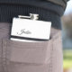 Modern Classic Custom Script White & Black Stripes Hip Flask