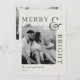 Modern classic two-sided family photo Christmas cards featuring "merry and bright" bold typography design with personalised family photo and holiday messages.