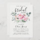 A modern classic, stylish, romantic bridal shower invitation template with a floral theme, featuring watercolor pink and blush roses, white filler flowers and eucalyptus foliage. Romantic and elegant, stylish and chic, it will appeal to the modern bride and groom who love roses and want a refined but relaxed atmosphere, perhaps in the countryside, in a garden or other place where nature plays an important role.