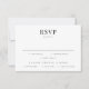 A modern wedding RSVP response card with a classic black and white colour scheme. Perfect for the classic or modern bride or couple. Coordinates with other items from the Modern Overlay Wedding Collection by Stacey Meacham.