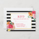 Modern Classic Striped Floral Peony Wedding RSVP Card