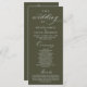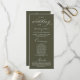 Modern Classy Elegant Wedding Ceremony Program card. It is designed with scroll accent that can be personalised with custom/ personalised text for your bridal party, ceremony details, memorial notes and thank you message, in olive green.