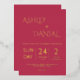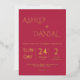 Introduce a touch of luxury to your wedding celebration with our modern foil wedding invitation, featuring elegant gold calligraphy on a bold magenta background. This invitation exudes sophistication and glamour, making it the perfect choice for your special day. The beautiful gold foil calligraphy is paired with a rich magenta background, creating a stunning contrast that is sure to impress your guests. The high-quality cardstock and your choice of size and paper type ensure a luxurious and personalised touch. Whether you're looking for a touch of elegance or a statement piece, this wedding invitation is sure to make a lasting impression. Add a touch of glamour to your wedding celebration with this modern foil invitation.