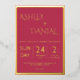Introduce a touch of luxury to your wedding celebration with our modern foil wedding invitation, featuring elegant gold calligraphy on a bold magenta background with a gold frame. This invitation exudes sophistication and glamour, making it the perfect choice for your special day. The beautiful gold foil calligraphy is paired with a rich magenta background, creating a stunning contrast that is sure to impress your guests. The high-quality cardstock and your choice of size and paper type ensure a luxurious and personalised touch. Whether you're looking for a touch of elegance or a statement piece, this wedding invitation is sure to make a lasting impression. Add a touch of glamour to your wedding celebration with this modern foil invitation.