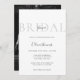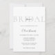 This bridal shower invitation has a sophisticated and minimalist design with a soft, elegant feel. The background is a clean white, and the word "BRIDAL" is displayed in large, light grey uppercase letters across the top, creating a subtle yet stylish backdrop. The word "shower" is overlaid in a small, delicate script font. The text that follows is centred, with a mix of uppercase serif and cursive fonts, adding a graceful touch to the bride-to-be's name and event details. The overall layout is simple, airy, and refined, conveying a modern, classy aesthetic perfect for a bridal celebration.