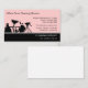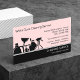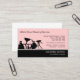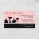 Cleaning service business cards with modern professional design template that includes a pink background color you can customize, text and layout you can personalize, and image with cleaning supplies. An inexpensive way to promote your services designed as a business card template for a maid, housekeeper, or cleaning services.