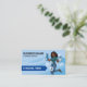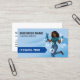 Modern Cleaning Service Cartoon Maid Blue Curves Business Card