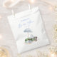 Set the tone for a dreamy and elegant bridal shower with this coastal-inspired beach picnic favour bag. Featuring a delicate watercolor illustration of a seaside setting with a chic umbrella, picnic table, and soft blue tones, this sophisticated and modern design is perfect for a beach bridal shower, destination celebration, or outdoor garden party. The script typography adds a touch of timeless elegance, while the neutral aesthetic complements a variety of themes, from boho and minimalist to luxury and classic.